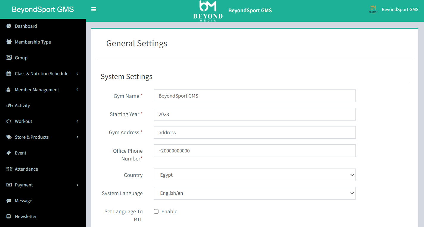 BeyondSport GMS  is a comprehensive gym management system that helps gym owners and managers streamline their business operations. The system is designed to manage all aspects of gym operations, including member registration, check-in, scheduling, billing, attendance tracking, and more.